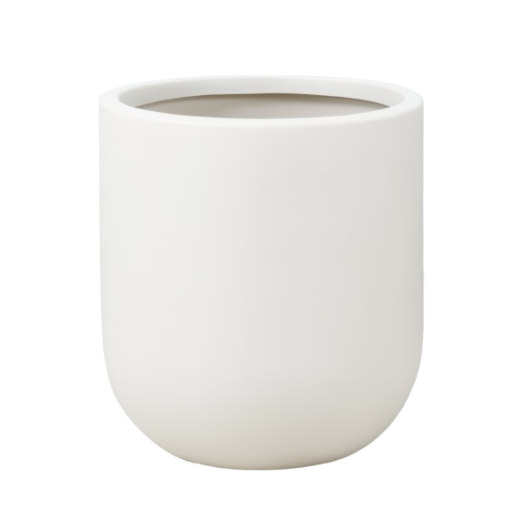 Minimalistisk potte med mykt avrundet form og matt, perlehvit overflate. Den lyse tonen gir et friskt og elegant preg som fremhever grønne planter og passer sømløst inn i moderne og nordiske interiører.