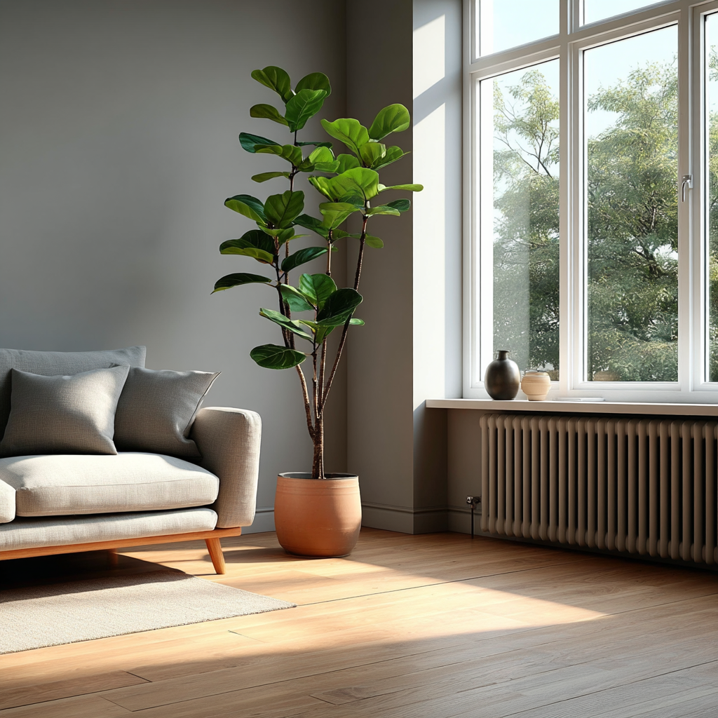 Denne fiolinfiken har store, blanke blader i dype grønntoner som gir et friskt og moderne uttrykk. Den passer spesielt godt i nordiske, minimalistiske og hotellinspirerte interiører. Med høyden på 180 cm blir den et tydelig blikkfang i stue, entré eller på kontor.